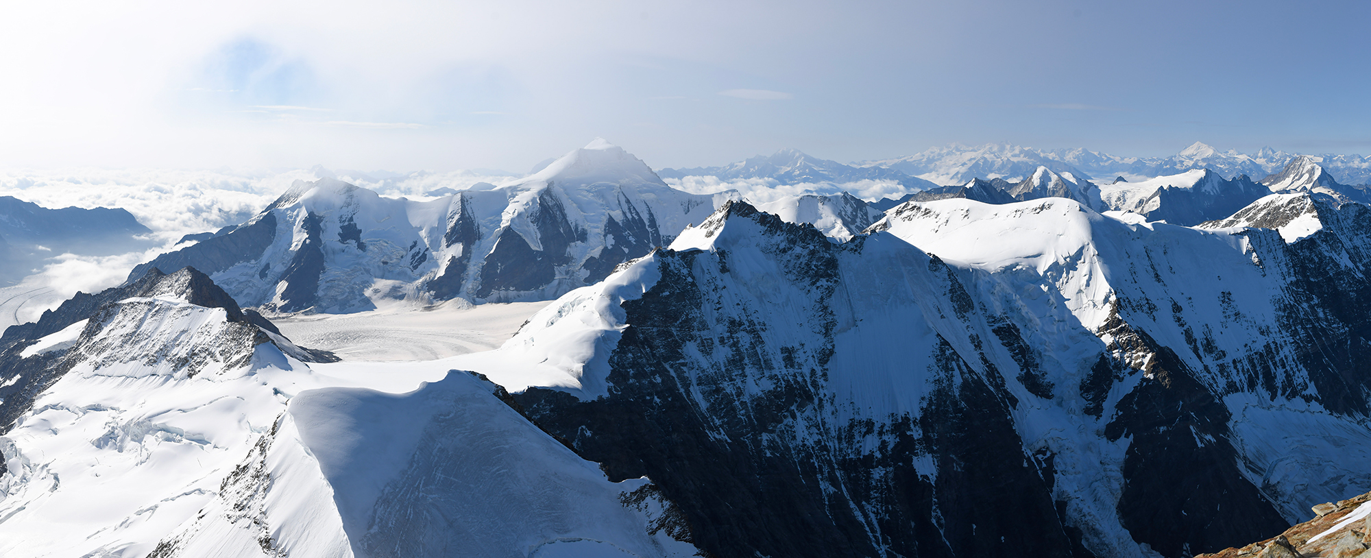 Matterhorn, Weisshorn, Dufour, Mont Blanc, Dent d’Hérens, Grand Combin, Täschhorn, Dom, etc.